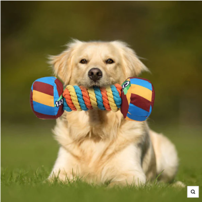 Arcoíris mancuernas interactivas crujien cuerdas duraderas juguetes para perros