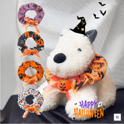 Lindo pañuelo de perro de Halloween con pañuelo de hoja de loto de calabaza